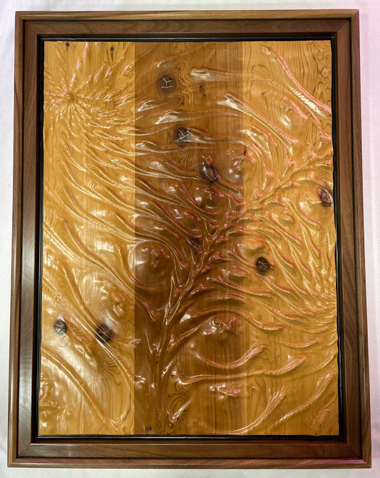 Each piece is single production so photos are representative of actual product for sale. In addition each piece will come with a certificate describing what materials are used, identifying number showing number in series and date created. This number along with the artist signature will be carved onto a plate affixed to the back of each piece.
