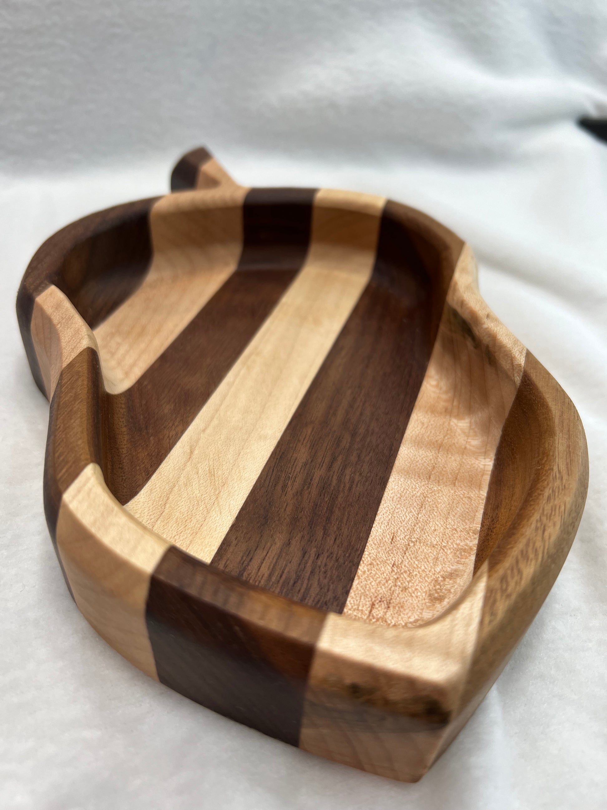Maple and walnut bands come together to form this fun tray. Pairs great our Striped Squirrel Tray! Every acorn will be slightly different since we make these cute little guys out of the leftovers from our large cutting boards.